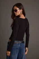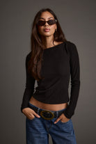 As reliable as your morning coffee order,  the Matti Black Boat Neck top is fall closet essential. With a flattering boat neckline, soft ribbed knit material, the Matti the chic staple we’re reaching for on busy fall mornings. You decide the vibe and layer under your favorite jacket or wear it or wear it on its own because you deserve a top that works as hard as you do.