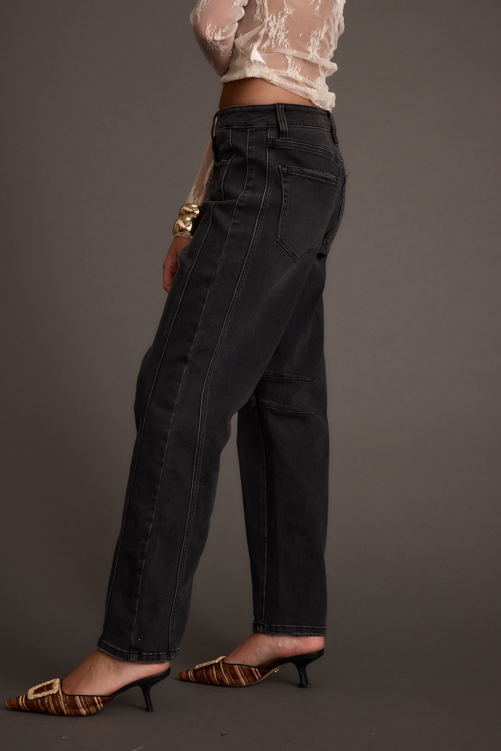 Jeans of the season have landed. Introducing the newest color way of jeans you couldn't get enough of Muse Denim Jeans in Black. With a mid rise fit, wide leg that tapers at the ankle these denim dreams are not your average jeans. Pair with baby tees by day and elevate your look with kitten heels and bold accessories by night for a classic look we can’t get enough of. Trust us, you’re going to need both colors—the denim and the black in your closet rotation.