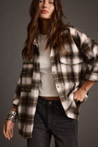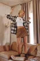A tribe OG is back in a brand new fall-ready color, say hello to the Fireside Espresso Plaid Flannel. With the same oversized fit you love, now in a espresso plaid color, the Fireside is perfect for layering underneath a leather jacket or wearing on its own with your fave pair of jeans.