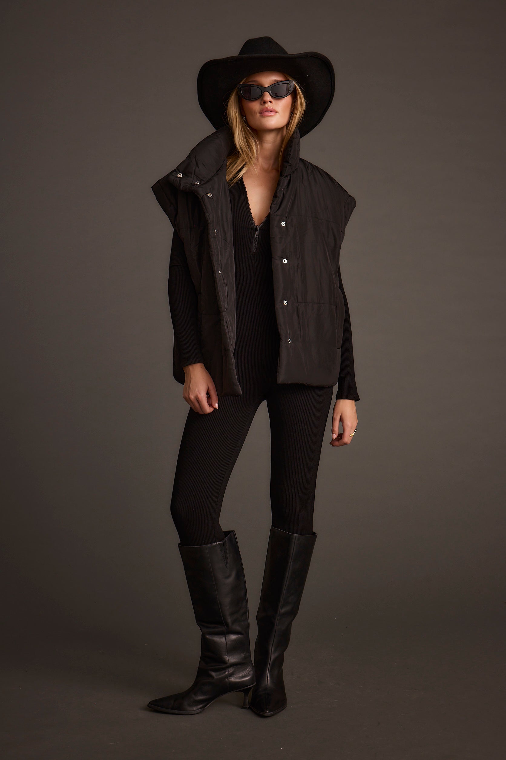 The fitted Nordic Black Ribbed Jumpsuit is the one-and-done outfit you’ll live in. It's your most comfortable and flattering bodysuit designed with a control top for subtle contouring, and the black color keeps it easy to style. It's hard to choose between sneakers, boots, or a jacket since it works with everything.