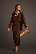 The Teresa Mocha Cropped Cardigan is soft, cozy, and easy to style. Designed with a relaxed fit and button-front detail, it adds warmth without the bulk. Pair it with denim or the matching sweater dress for the full look.