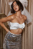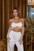 Romance is in the air with this Keira White Rosette Bandeau Top. Pair with the Halley White Satin Trousers for a chic night out on the town! Or a pair of cut off shorts and some cowgirl boots