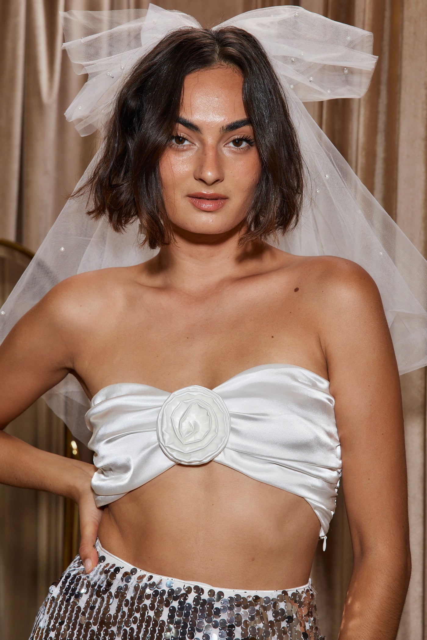 pair with the Halley White Satin Trousers, finish the look with the Adaline Pearl Bridal Gloves