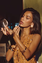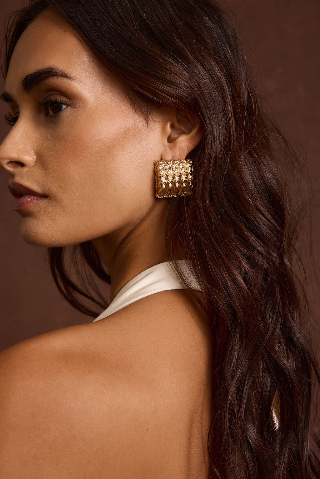 She knows exactly what she's doing in the Calalia gold earrings. The textured gold goes with everything and anything, but you already know that. Dress up a black tailored fit for your sunset dinner or throw them on with a classic top and denim for relaxed vacation vibes.