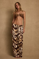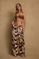 Booked, bronze and busy - the Clear Breeze Mocha Zebra Pant is made for jetsetting. In the luxe mocha blurred zebra brown print, and effortless wide leg silhouette, the all new Clear Breeze Pants is cute on it’s own but ever better with the matching Kiki Mocha Zebra Tank.