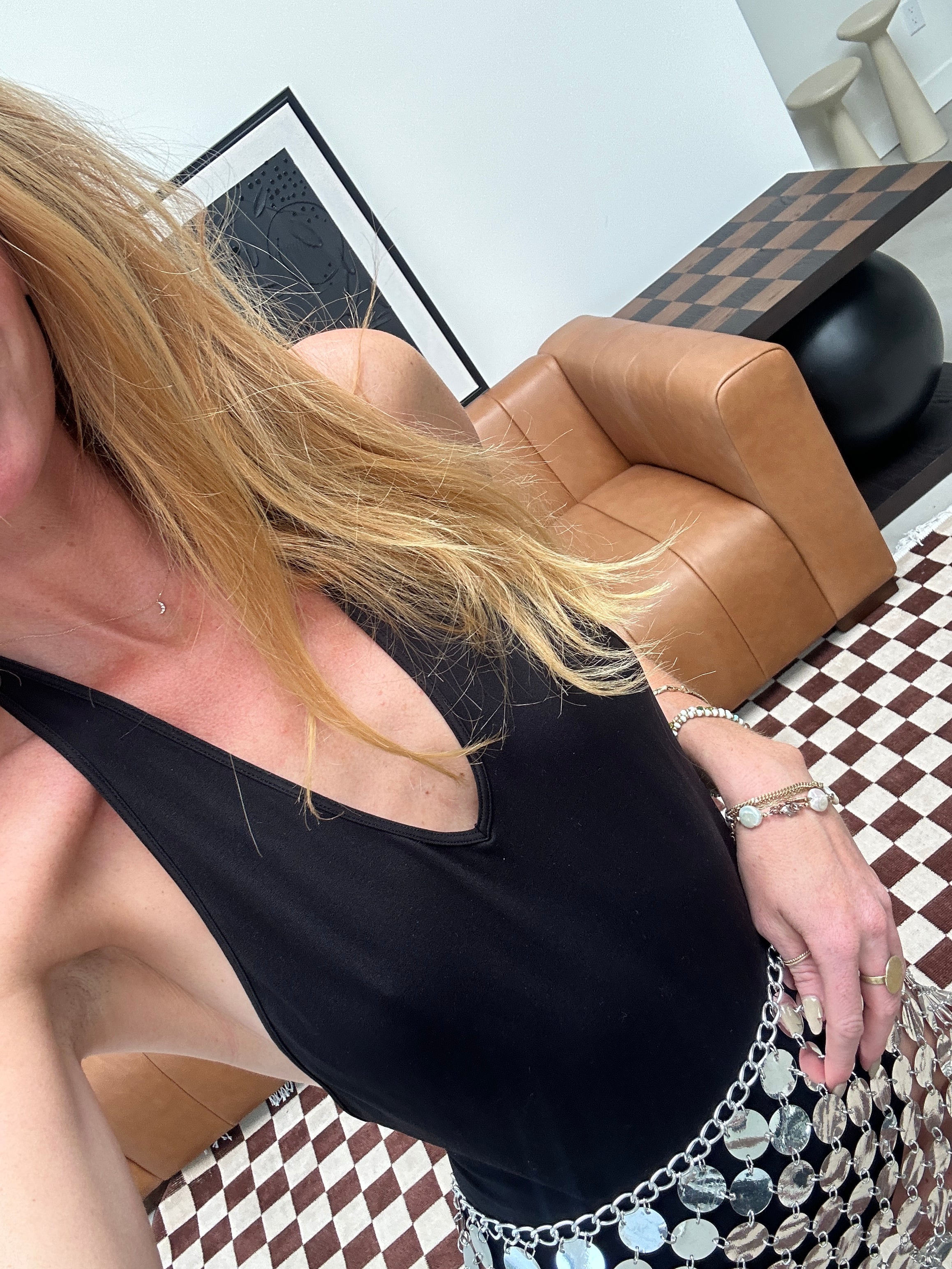 Get ready to slay at every festival with our fabulous Diana Black Bodysuit! Crafted with stretchy, comfortable fabric, it's the ultimate base layer to wear under the best selling Diana Silver Disco Dress. Rock it with our viral Diana Disco Dress to keep you feeling cute and confident from dawn till dusk!