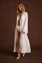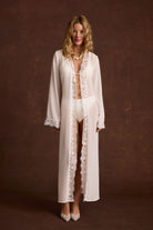 Cue the wedding bells in the Dove White Bridal Robe. Slip it on while you’re getting hair and makeup done, for honeymoon lounging, or just because it's your day and you feel like it. The lace detailing and sheer material will help create perfect bridal moments and memories.