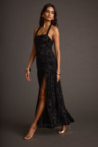 You asked and we delivered — meet the new body inspired by our best-selling Angela Black Maxi Dress. Introducing the Hollow Black Burnout Maxi Dress. The drop-waist silhouette, velvet burnout floral detail, and halter neckline highlight your shoulders in the most gorgeous way, making this the dress that will stand out at every holiday event.