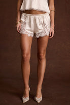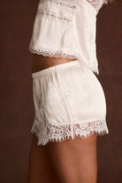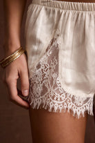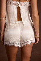 Cue the wedding bells in the Late Night White Satin Shorts. It's hard being a bride, you deserve something to relax and lounge in. Pair it perfectly with the matching Late Night White Satin Tank for getting-ready photos to honeymoon moments. The lace detailing and soft satin is lightweight, comfy, and perfect for your bridal season.