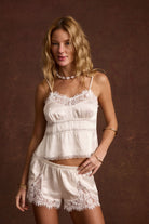 Married AF, in the Late Night White Satin Tank. Every bride-to-be needs a satin and lace set for her bridal season—and we designed this one with the bride in mind. Featuring a button-back closure for an easy, makeup-safe change on your wedding day! Pair it with the matching Late Night White Satin Shorts for the perfect seamless wedding season.