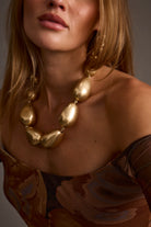 Make an impression with the Liora Gold Statement Necklace, a piece of jewelry every woman should have to complete the look. The radiant gold finish and sculptural shape make it feel luxe without being too heavy, never holding you down. A perfect piece for dressing up a basic tee or adding the final touch to an evening look.