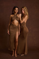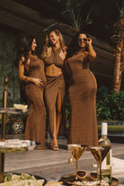 Glow up your closet with the Marea Bronze Halter Maxi Dress. Hugging you in all the ways your ex couldn't, the zipper closure ensures the perfect fitted look, every time. The low scoop back and halter neckline gives the whole look an elegant vibe, get ready to bring a plus one next wedding season.