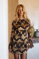 A cool girls night out deserves a dress that’s equally as attention grabbing. Marissa’s floral jacquard, open back, and flutter sleeves walk the line between sweet and just-a-little spicy. Perfect for rooftop rosé or saying yes to every RSVP.