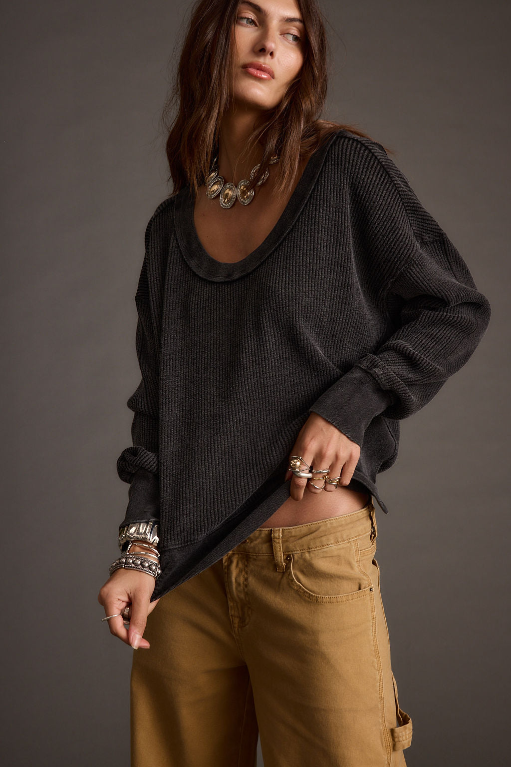 Better than his hoodie. The Not Your Ex’s Top brings cozy-chic energy in a washed black with a soft waffle knit, scoop neck, and relaxed fit. Cute on its own and perfect underneath fall flannels, Not Your Ex’s Waffle Top is good is a closet essential.
