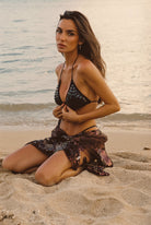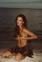Beach and this swimsuit are the only things you need this summer. This bikini top with matte sequins is just the right amount of sparkle you need to take you from beach to bar. Complete the look with the Sombra Black V Cut Bikini Bottoms and the Naran Black Beaded Sarong.