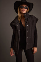 The sleeveless Summit Black Puffer Vest is the perfect oversized fit to complete any look this holiday season. It adds the perfect amount of warmth for the colder months ahead, making it a go-to for chalet nights or any time you want effortless winter layering. Its mockneck collar and wide-shoulder style brings effortless style to any outfit.