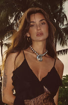 Elegant but impossible to ignore, the Toledo Silver Pendant Necklace is the bold finishing touch that will shine with the moonlight. With a thick silver beaded necklace and shell inspired pendant, the Toledo turns casual vacation fit into a yacht approved look.