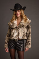 Turn heads in the newest design of our best-selling Wild Heart Faux Fur Cropped Jacket this season. The snake print faux fur gives it a luxe, edgy vibe, and the cropped fit makes it perfect for styling with high-waisted bottoms or a night-out look. It’s the kind of jacket that instantly turns up a fit, but make it winter.